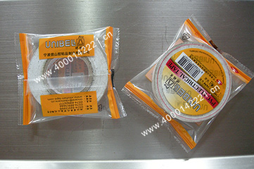 目前,我公司包裝機的范圍已從食品包裝走向了多元化,逐步邁進了工業包裝領域。本次案例,要介紹的就是膠布和軸承的包裝了。這次,客戶把我們的工作人員帶進了裝機現場。機器初步安裝完畢,技術人員馬上調試好了工作參數;膠帶背整齊有序的放進軌道里,機器便“啪啪啪”地生產起來了。這次的包裝效果極好,袋長控制精準,包裝效率極快;