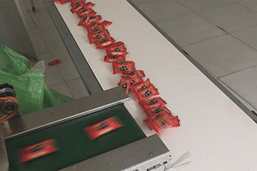 這次,客戶購買了我公司生產米花糖的整套設備,包含:SMCF-650切塊機、SMCJ-140攪拌機、SMLL-420理料包裝機、輸送帶等。以上全部設備是我公司自主研發的,用于生產米花糖、花生糖、瓜子糖等,機械等實現全自動化。米花糖自動完成下料、整壓、分條、分塊四個環節。理料包裝機速度達到5包/秒,產量非常樂觀。