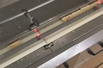 - 2017年5月12日,我公司客戶來我廠試機(jī),在工廠現(xiàn)場(chǎng),我們調(diào)試好了一套沙琪瑪流水線的設(shè)備供客戶觀看。沙琪瑪生產(chǎn)需經(jīng)過這么幾個(gè)流程,第一,將油炸好的面粒倒進(jìn)圓筒攪拌機(jī)攪拌;第二,攪拌好的物料裝進(jìn)SMCF-650切塊機(jī)的入料口,自動(dòng)完成整壓、冷卻、分條、分切這四道工序;第三,完成后的裸裝沙琪瑪經(jīng)理料線整理成一列,緊接著進(jìn)行分塊;第四,最后進(jìn)入理料包裝機(jī),便可完成自動(dòng)包裝了。...