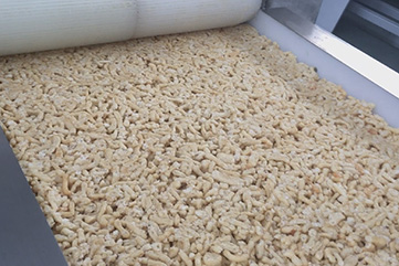 - 2017年10月19日,我公司迎來了德國(guó)客戶的現(xiàn)場(chǎng)驗(yàn)機(jī)。本次使用SMCP-70J擠出膨化機(jī)實(shí)驗(yàn),分別以大米、非洲糧食、玉米為對(duì)象;從實(shí)驗(yàn)結(jié)果看,星形米花的膨化度非常高,產(chǎn)量較大;非洲糧食膨化的成型效果最佳,成品率高;玉米的膨化效果相比大米而言,顏色更加鮮艷,呈淡黃色,比較有食欲感;...