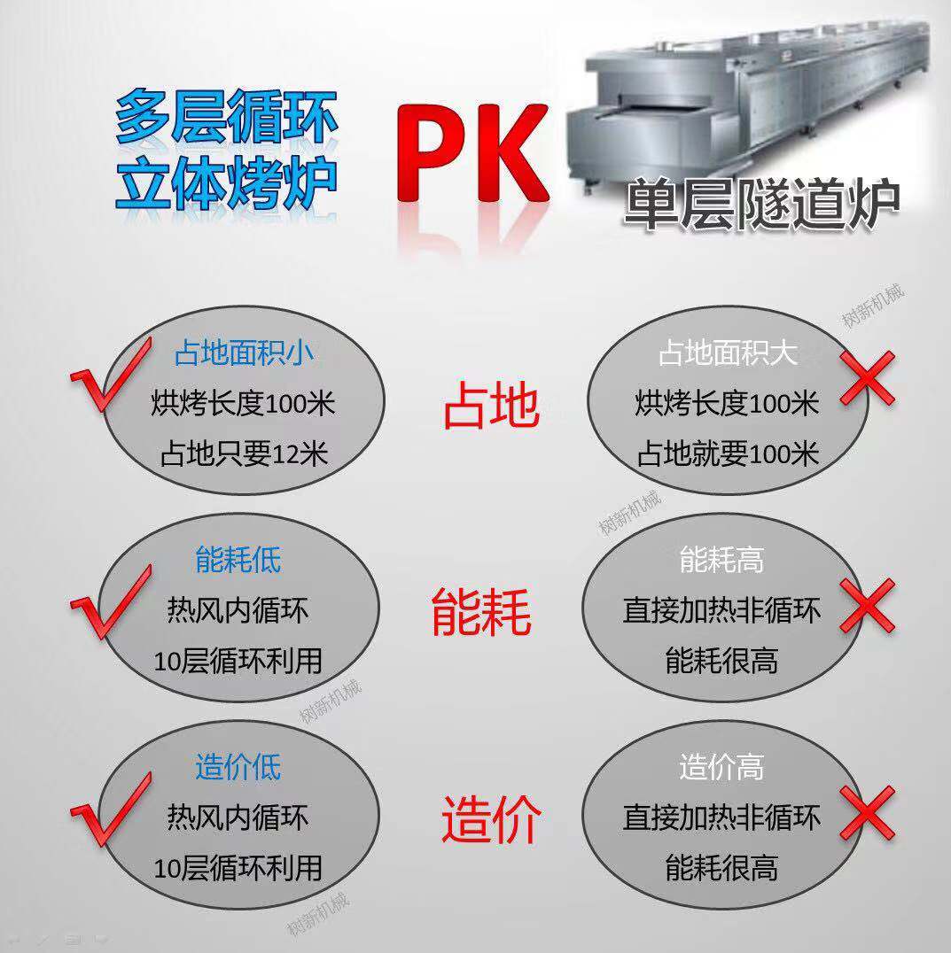 占地小:烤爐是10層循環的結構,占地只有循環長度的1/10,大大節約了車間場地