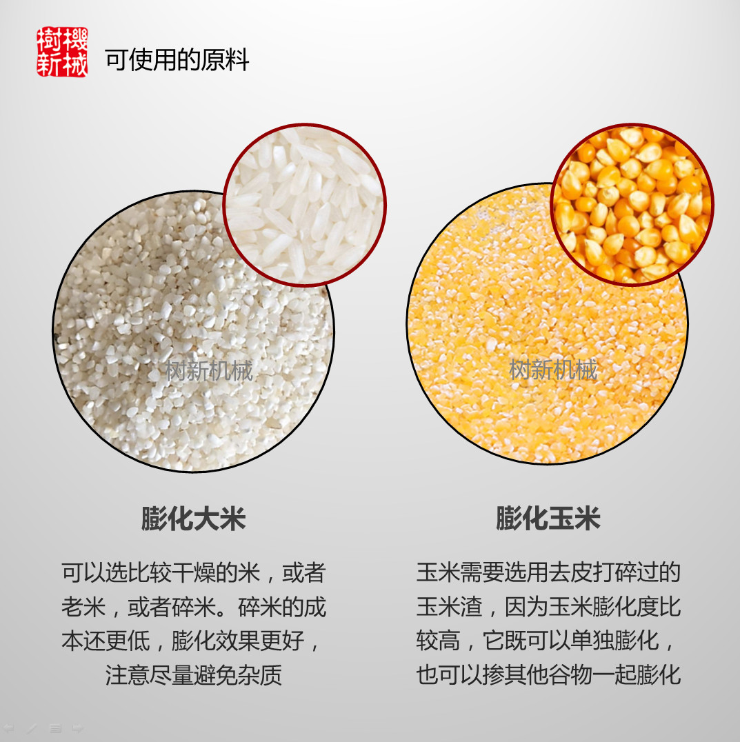 適合膨化大米,玉米,綠豆等谷物,可做成大小不同形狀各異的米花,機器產量可達100KG每小時,高配置,耐用,操作簡單,值得購買。