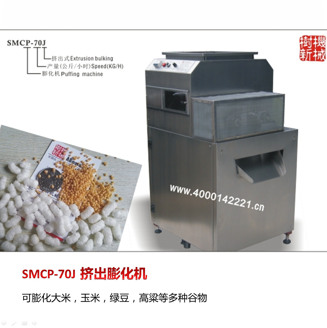 - SMCP-70J 擠出膨化機(米花機),可膨化大米、玉米、高粱、綠豆、黃豆等物料,現升級為全不銹鋼外殼! SMCP-50Q 氣流膨化機(米通機) 可膨化大米、小米、小麥、青稞、苦蕎、玉米、高粱、薏仁、蕎麥、豆類等含淀粉的物料.